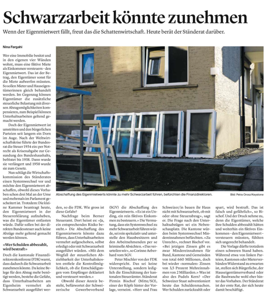 • Komitee Eigenmietwert-Nein bei Kommentare zur Eigenmietwerterhöhung im AG